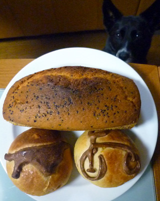 数日前にここに出たのでV.C.黒犬メンバーの二人が手作りパンを持ってきてくれました。